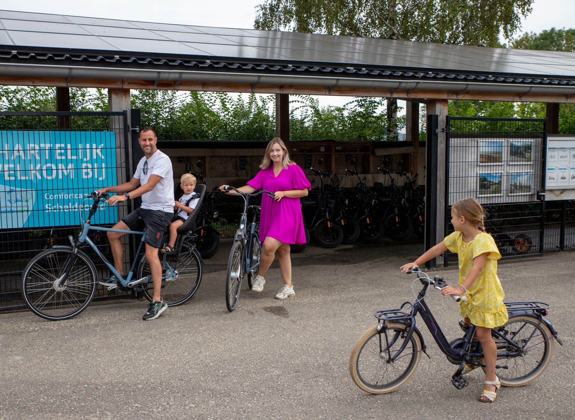 Ook zijn er meerdere kinderfietsen (20", 22", 24" en 26") en kunnen de kleinere kinderen veilig meegenomen worden in een kinderzitje (voor en/of achter).